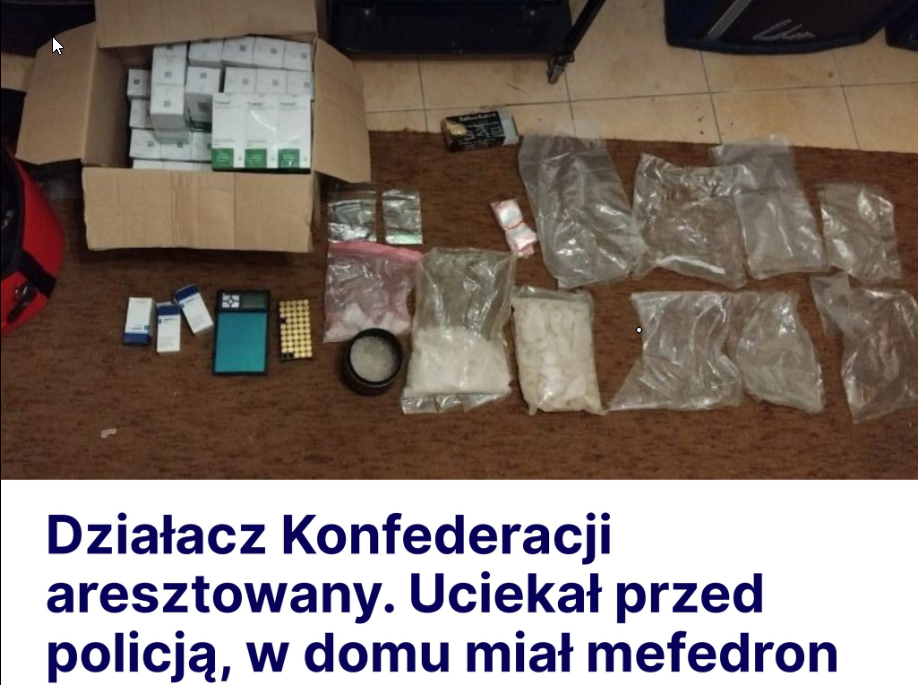 Działacz Konfederacji aresztowany. Uciekał przed policją, w domu miał mefedron